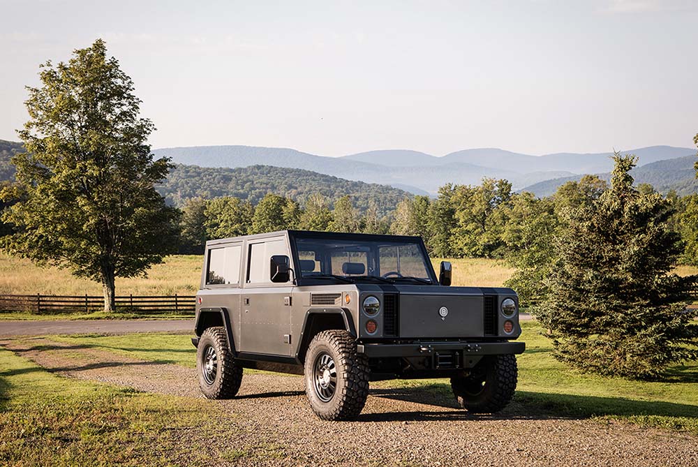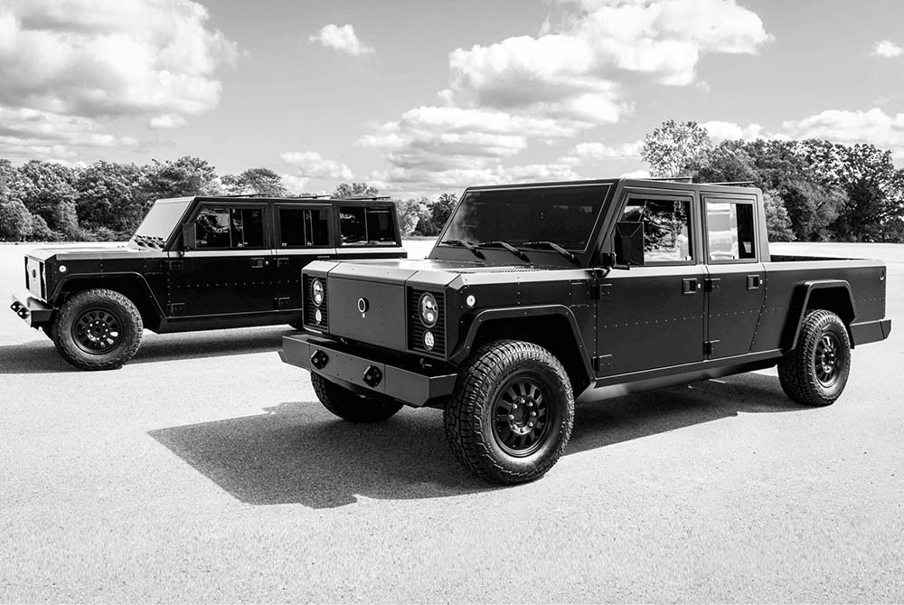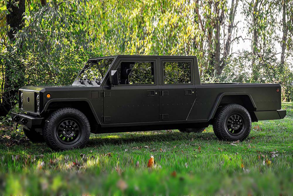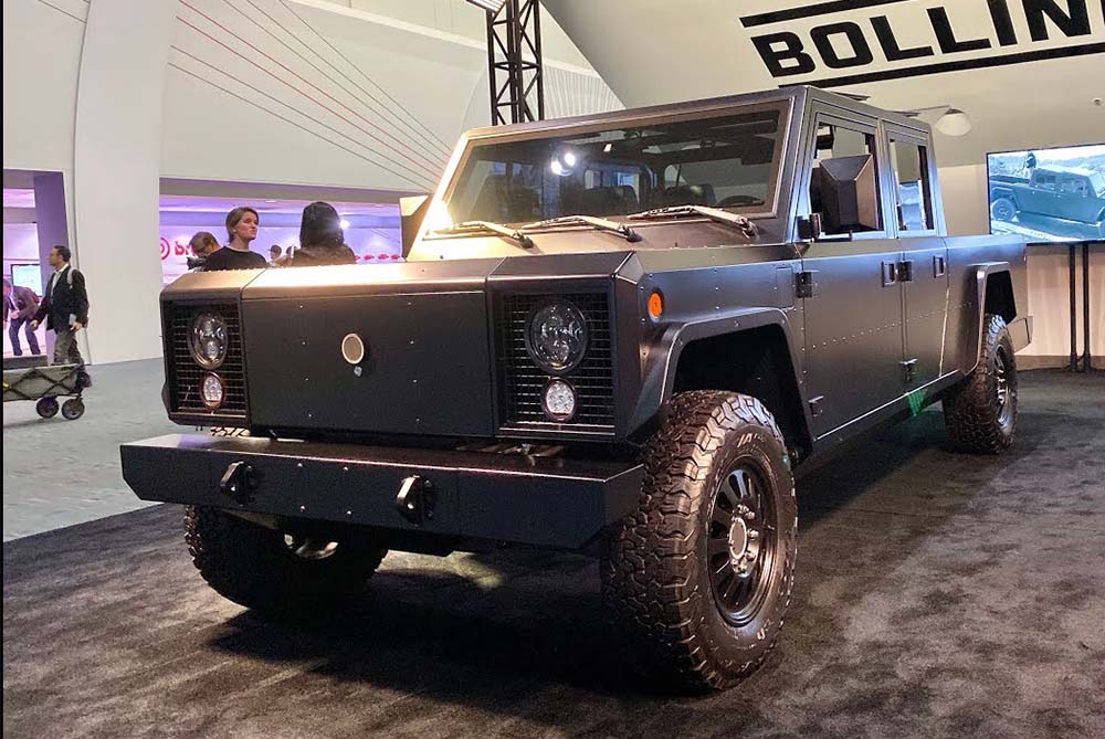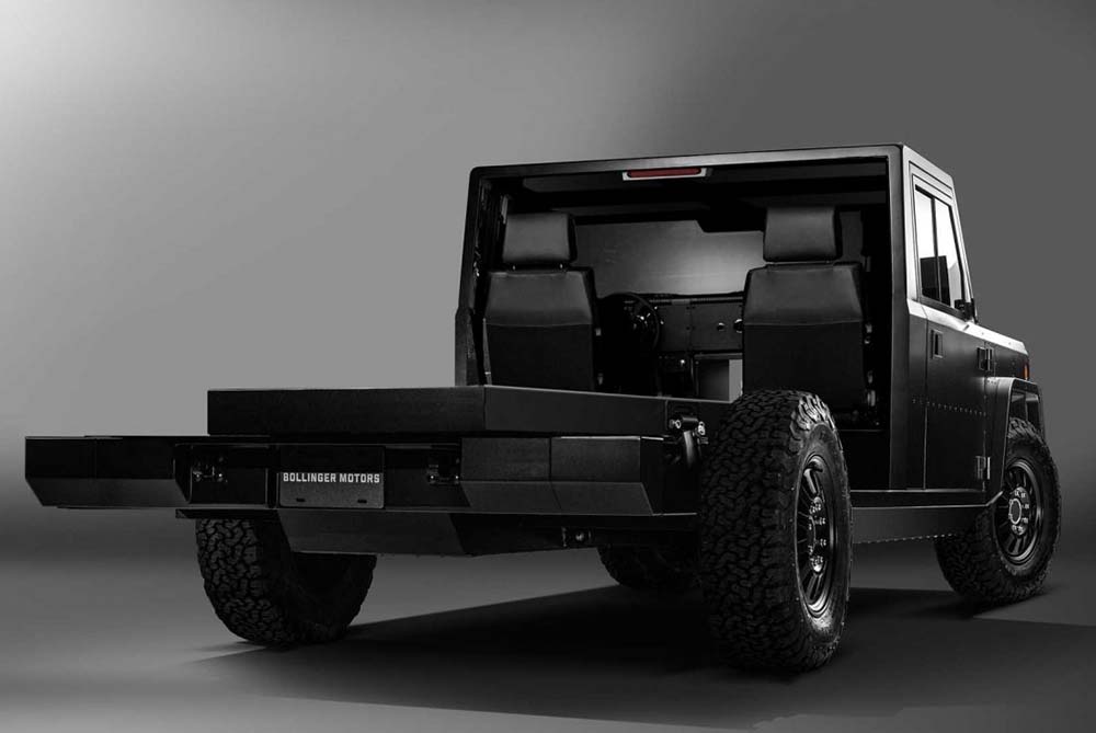 The Bollinger B2 is a rugged all-electric pickup with a ‘unique’ boxy design which focuses on functionality and durability and is not a Land Rover Defender copy… . It has a powerful electric powertrain for strong performance both off- and on-road. A minimalist interior prioritizes utility with a spacious and configurable cabin. Key highlights include instant torque, good towing capabilities and features like a full pass-through for longer cargo. The B2 combines zero-emission driving with practicality, making it ideal for those seeking a sustainable yet capable vehicle.