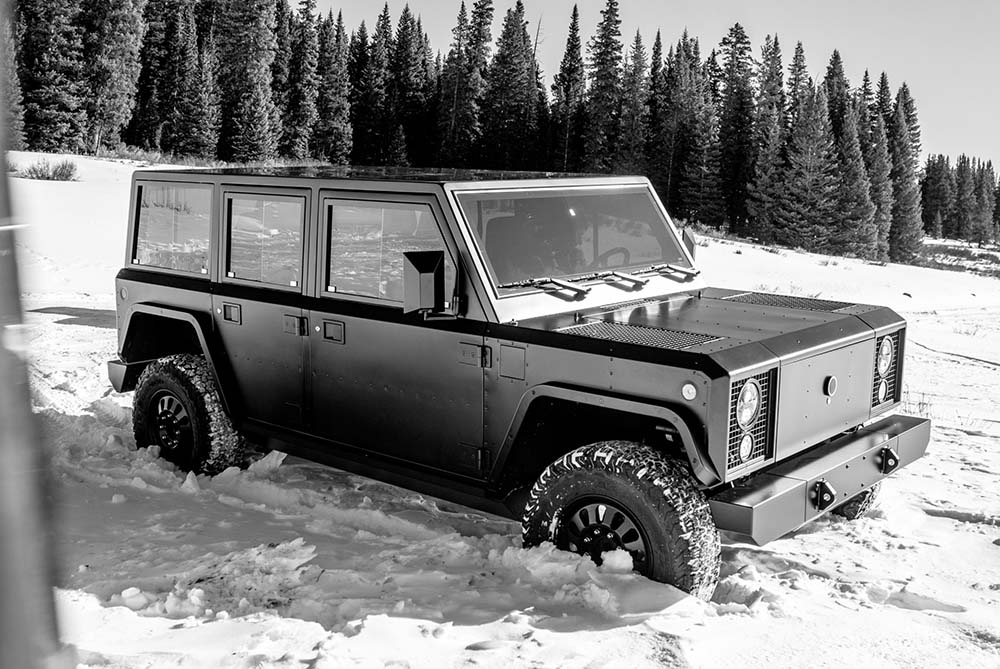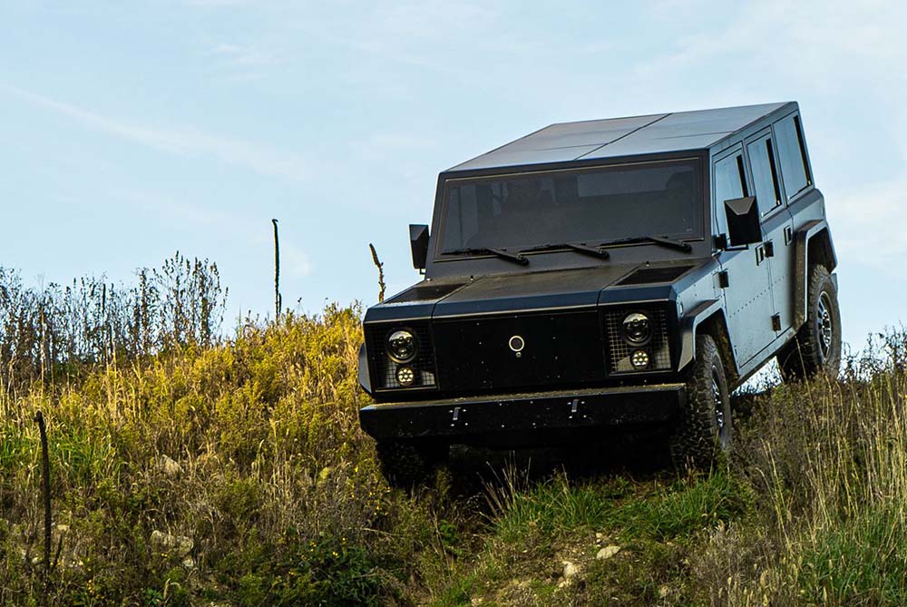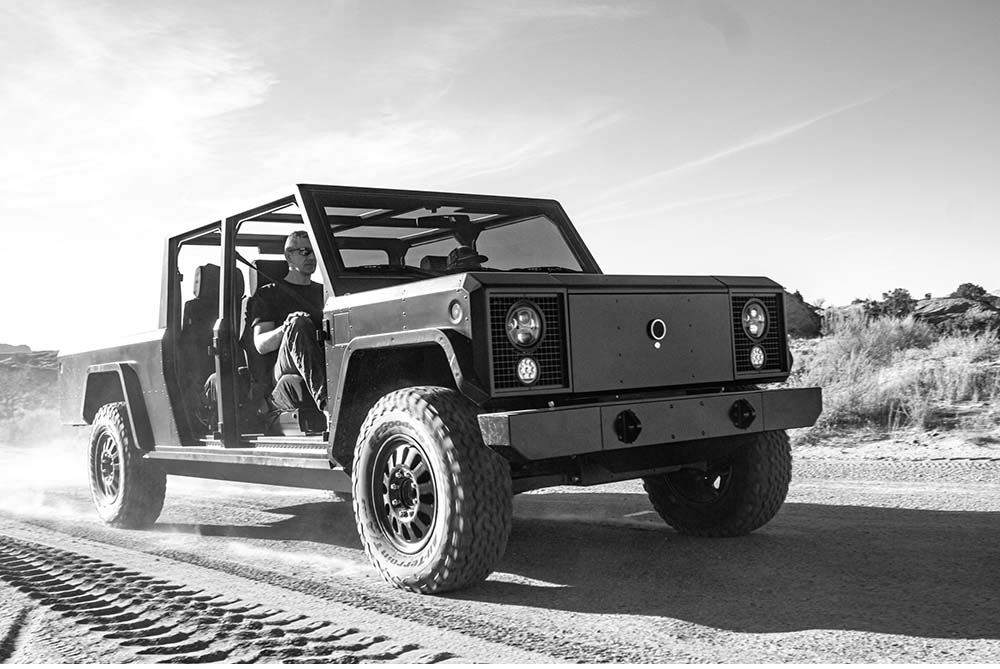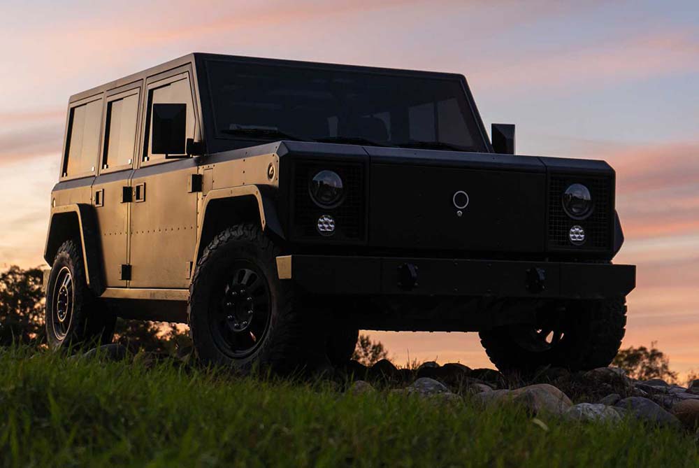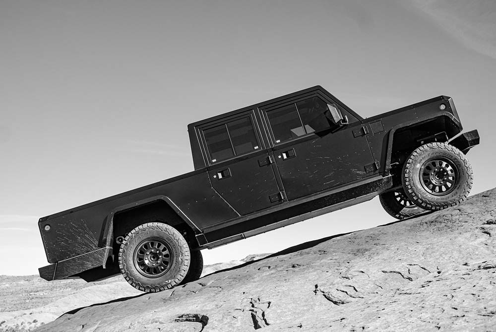 The Bollinger B2 is a rugged all-electric pickup with a ‘unique’ boxy design which focuses on functionality and durability and is not a Land Rover Defender copy… . It has a powerful electric powertrain for strong performance both off- and on-road. A minimalist interior prioritizes utility with a spacious and configurable cabin. Key highlights include instant torque, good towing capabilities and features like a full pass-through for longer cargo. The B2 combines zero-emission driving with practicality, making it ideal for those seeking a sustainable yet capable vehicle.