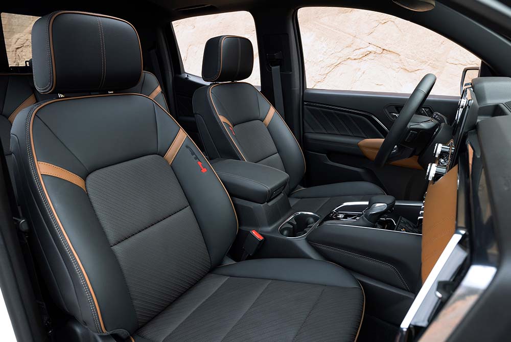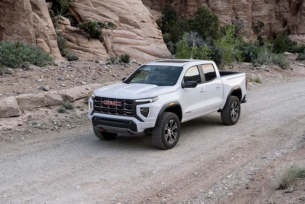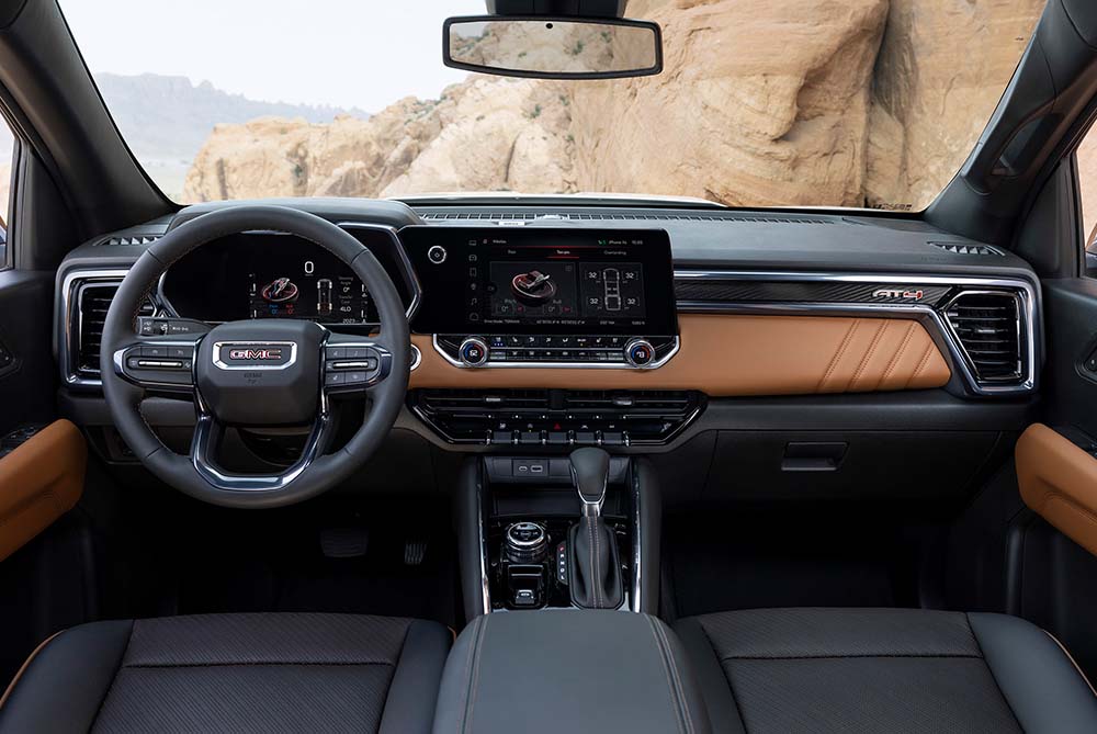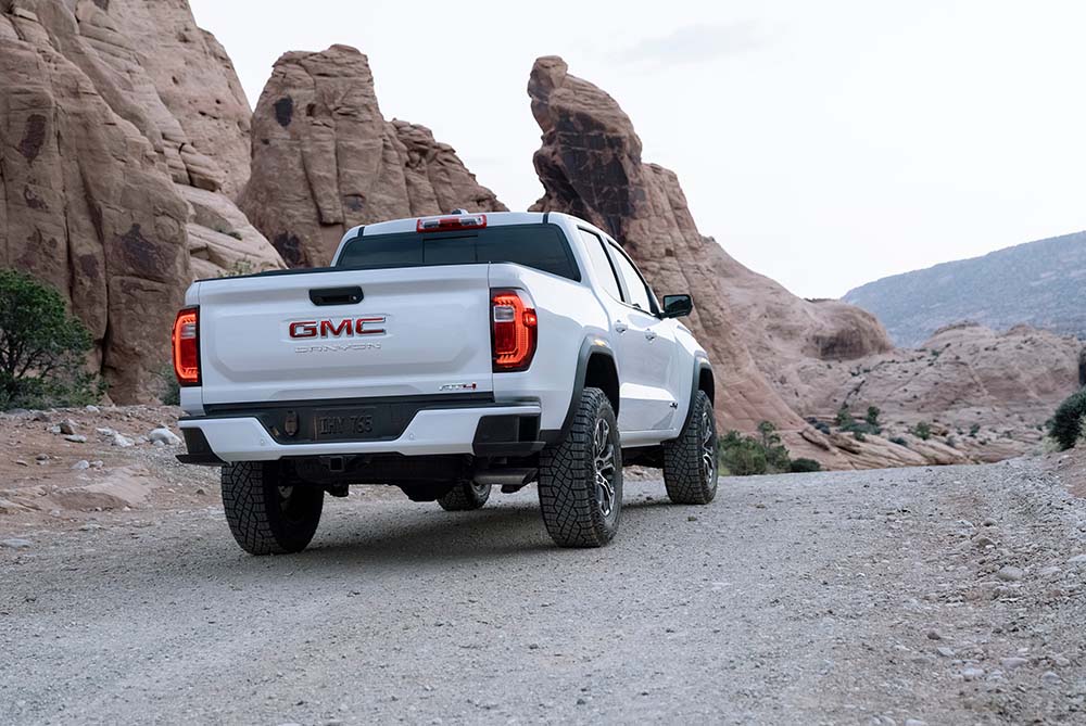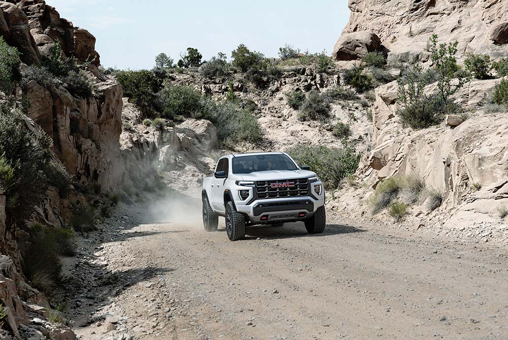 The GMC Canyon AT4 is aimed at the off-road enthusiast. It has an adventurous design, featuring a distinctive x-shaped front grille, dark chrome finishes and off-road optimized wheels wrapped in all-terrain tires. The AT4 trim comes off-road ready with a specially tuned suspension setup, advanced 4WD system, skid plates and an automatic locking rear differential for harsher terrain. Inside, the AT4 is comfortable yet with durable materials and advanced infotainment options. Under the hood, it provides powerful engine choices balance performance with efficiency. Want something for the city and the weekend? Why not get an AT4?