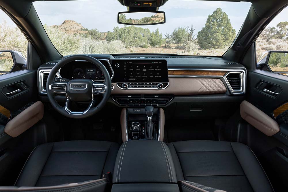 The GMC Canyon Denali is a midsize truck with premium features and rugged off-road capability. It’s got a distinctive in-your-face chrome grille, unique Denali styling cues and premium alloy wheel, setting it apart from the standard Canyon. The interior goes for luxury with high-quality leather, heated and ventilated front seats and real wood. There are several engines including a V6 for raw performance and a diesel for efficiency and towing. The Denali trim enhances the driving experience with advanced safety features and a refined suspension system for a smooth ride on both highways and bumpy trails.