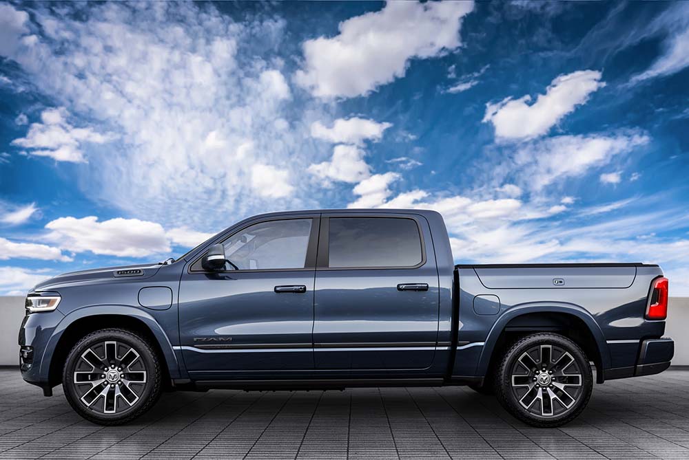 If you want something that looks slightly familiar but will smoke anyone at the lights, consider the Ramcharger. The 1500 is the hybrid electric version of the popular 1500 with a more futuristic, distinctive design, blending rugged aesthetics with modern lines. Under the hood it's powered by a liquid-cooled electric battery and motor mated to a 3.6-liter V6 engine, acting as an onboard generator when you run out of battery juice. The Ramcharger achieves a best-in-class driving range of (a claimed) 690 miles.