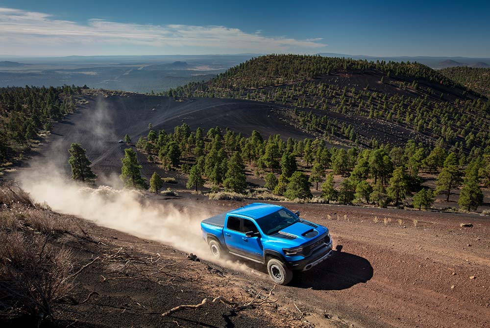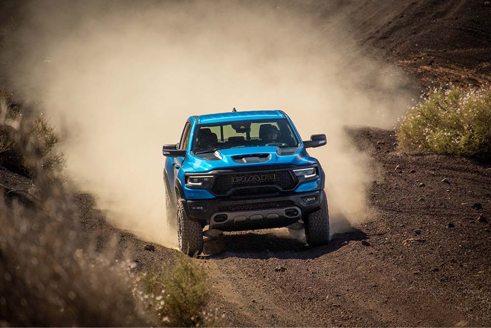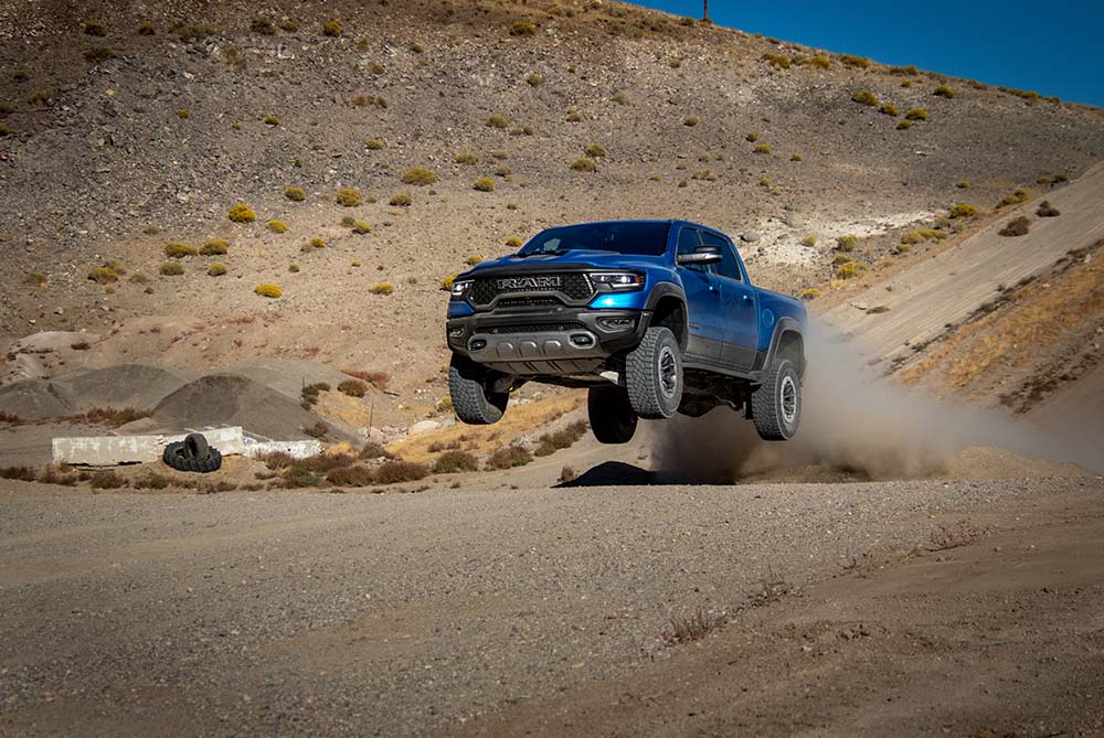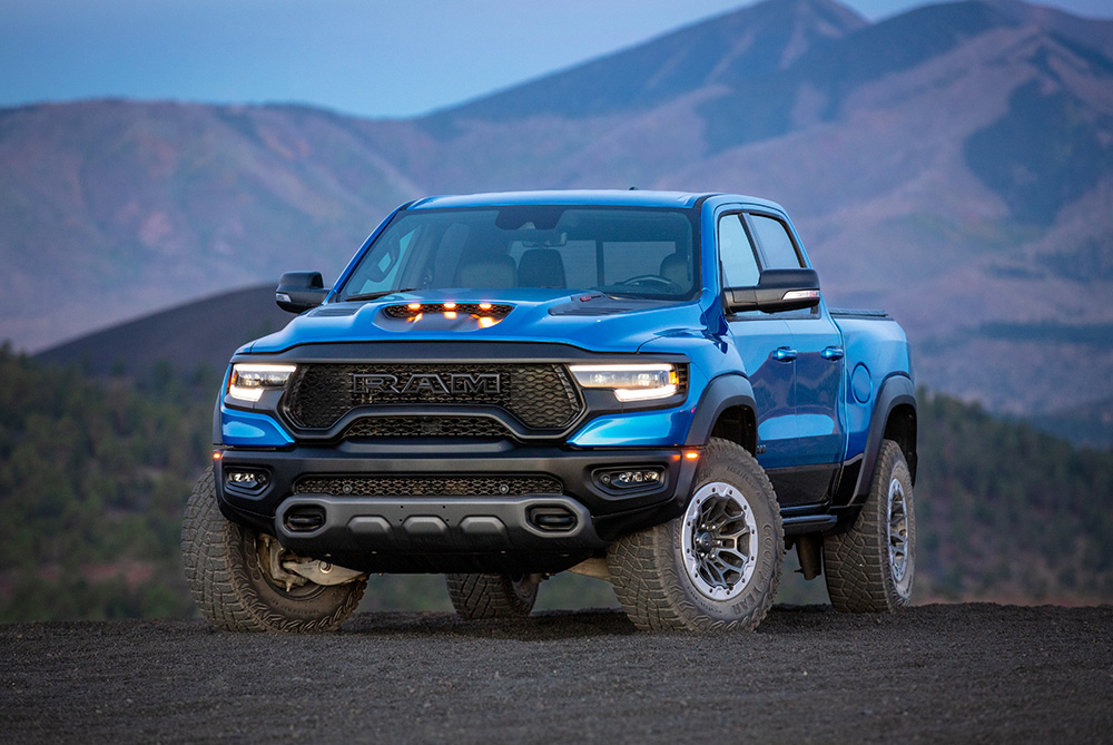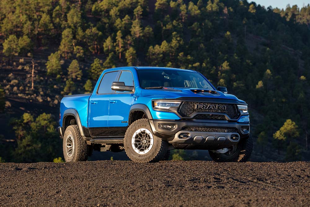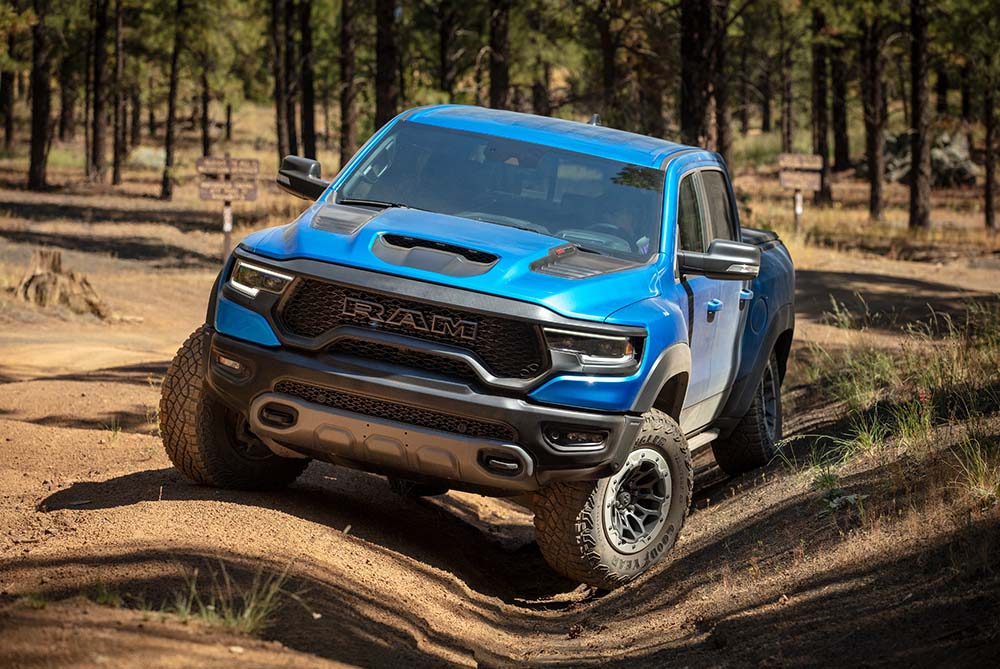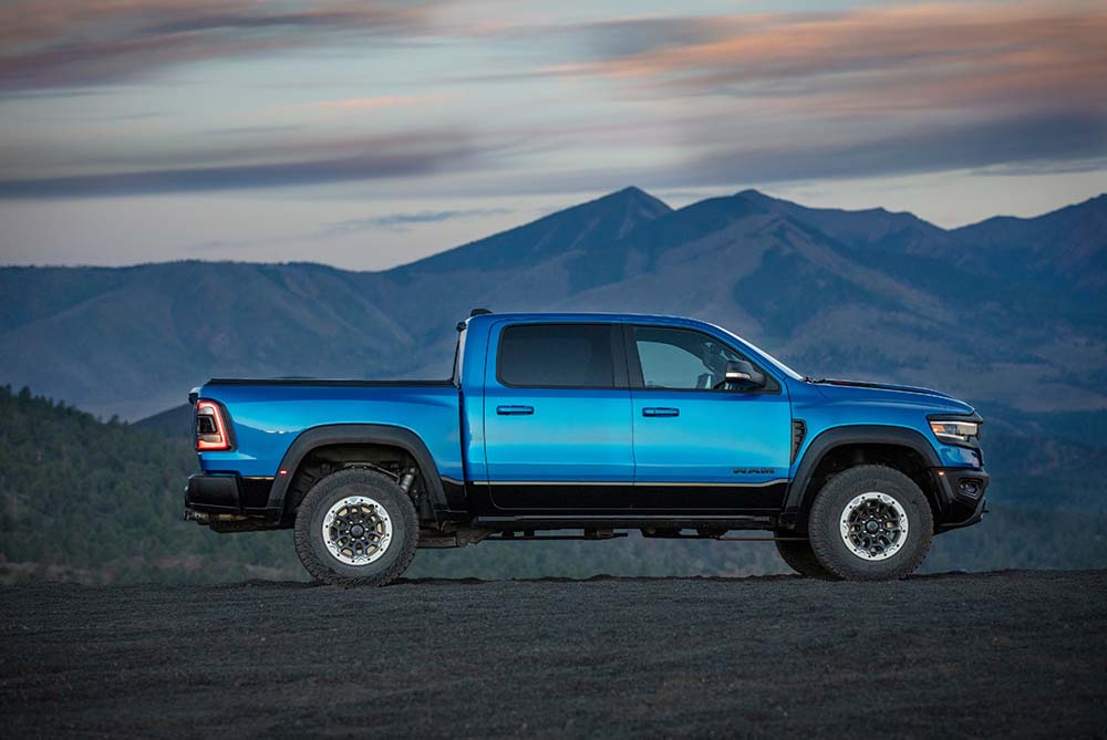 If there was ever a truck to worry the Raptor it would be the TRX. Ram's 1500 TRX has got an aggressive and rugged persona, reflecting its performance. With a wide stance, muscular lines and bold front grille, the TRX commands attention on- and off-road. The lifted suspension, massive tires and functional hood scoop enhance its looks and nod towards its off-road prowess. Inside, the TRX combines premium materials and cutting-edge tech, providing luxury and functionality for an exhilarating driving experience. The design of the Ram 1500 TRX says power, capability and a commitment to performance.