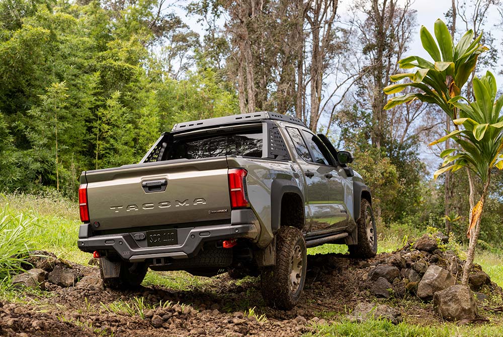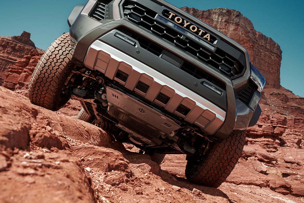 The Toyota Tacoma TRD Off-Road is basically a Tacoma on steroids which gives the F-150 Raptor a run for its money. As part of the Tacoma range makes it a proper adventure-ready pickup with all-terrain tires, an electronically controlled locking rear differential and Bilstein shocks for superior off-road capability. It has TRD Off-Road badging and offers a comfortable, tech-equipped interior with navigation and a multi-terrain monitor. Powered by a robust V6 engine, it balances power with efficiency, making it suitable for daily driving and off-road adventures.